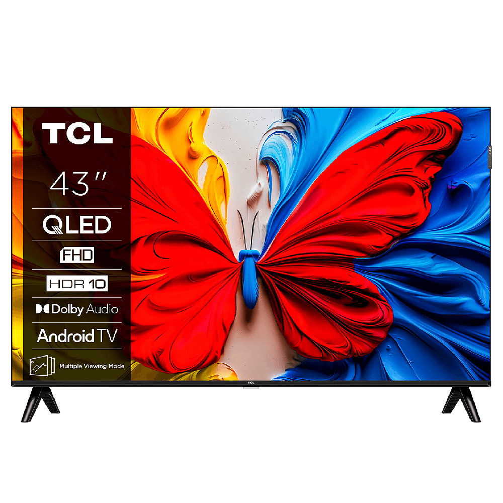 | Slim Modern Design: Metallic bezel-less frame for a sleek look. Vivid Display: QLED with HVA panel, HDR10 HLG support for vibrant colors and deep contrast. Brightness Refresh Rate: 300 nits (typical) brightness with 60Hz refresh rate. Immersive Audio: Dolby Audio 2.0CH; 210W (43/40) or 28W (32) speakers for clear sound. Smart Entertainment: Google TV with Game Mode for smooth gaming experience. Performance: Quad-core CA55x4 CPU @1.1GHz with 1GB RAM + 8GB storage. Connectivity Options: Wi-Fi 4 (2.4G + 5G), Bluetooth 5.0, 2 HDMI 1.4b, 2 USB 2.0 ports. 2 Years Comprehensive Warranty and 1 Year service warranty: [Excluding: Remote control, Accessories, Batteries, 3D Glasses, Cabinet] |